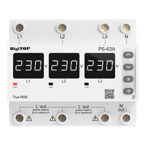 Перемикач фаз PS-63A M6W призначений для живлення промислового і побутового однофазного навантаження 220/230В 50Гц від однієї з фаз трифазної мережі, з метою забезпечення живлення особливо відповідального однофазного обладнання від найбільш якісної фази і захисту його від підвищеної або зниженої напруги.