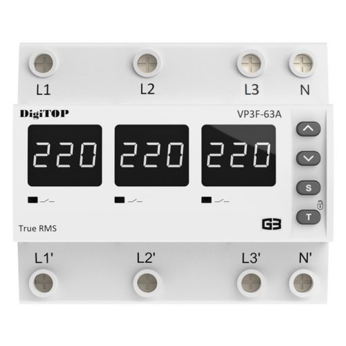 Трифазне реле напруги VP-3F63А M6W призначене для захисту трифазних споживачів від перепадів напруги, асиметрії фаз, зникнення фаз, контролю порядку чергування фаз. Пристрій запобігає виходу з ладу і продовжує термін експлуатації електрообладнання. З можливістю вибору режиму роботи як трифазне або як три незалежних однофазних реле.