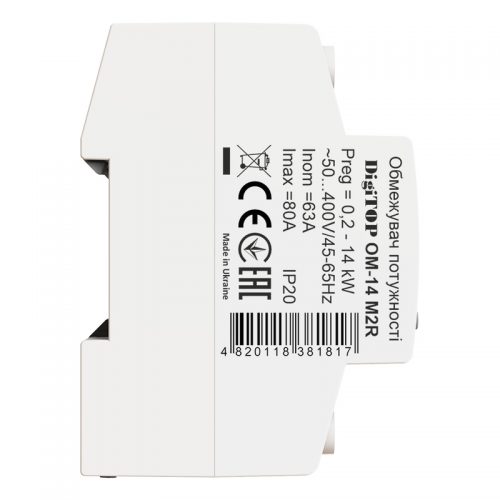 Обмежувач потужності ОМ-14 M2R призначений для контролю потужності що споживається в однофазній електричній мережі.