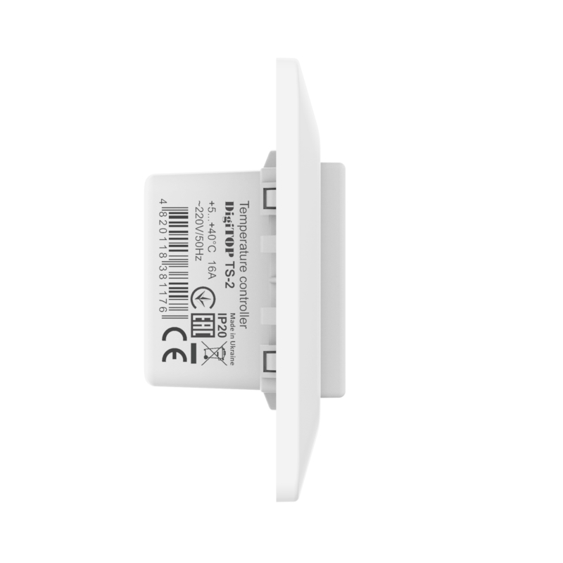 Терморегулятор TS-2 – призначений для підтримування заданої користувачем температури електричної теплої підлоги в заданий часовий інтервал звідображенням значень на вбудованому цифровому світлодіодному індикаторі. Комплектується герметичним датчиком DS18B20 довжиною 3 м.
