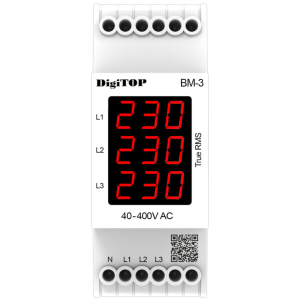 Вольтметр ВМ-3 призначений для вимірювання діючого значення напруги змінного струму частотою 50 (±1) Гц в трифазній мережі з відображенням поточних значень на цифрових світлодіодних індикаторах.